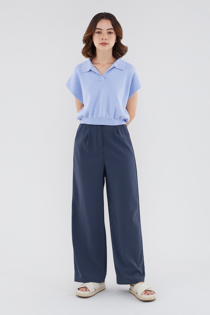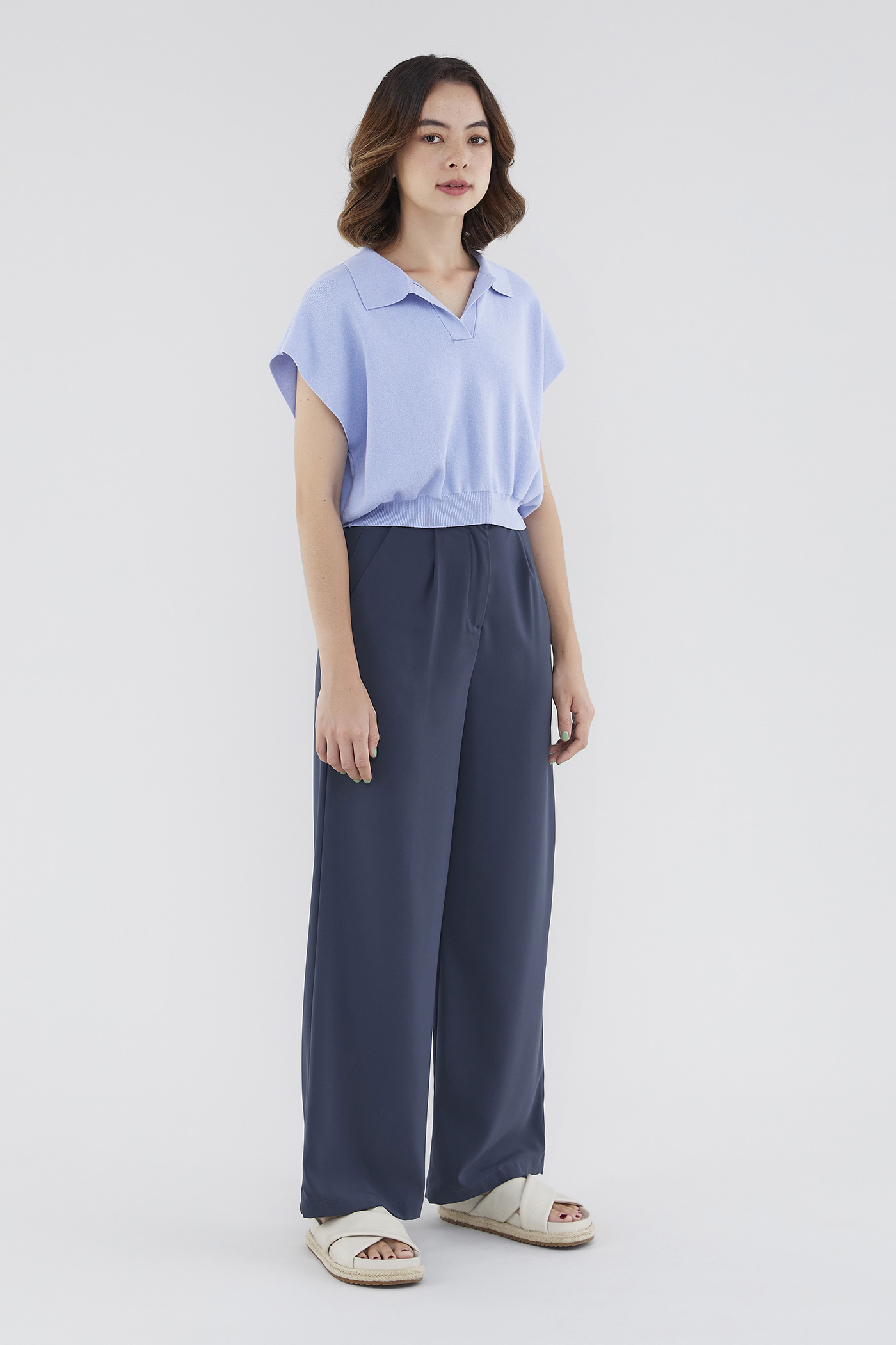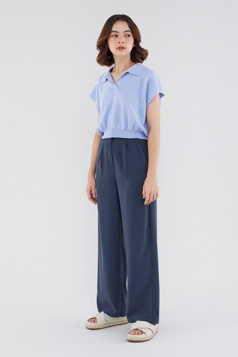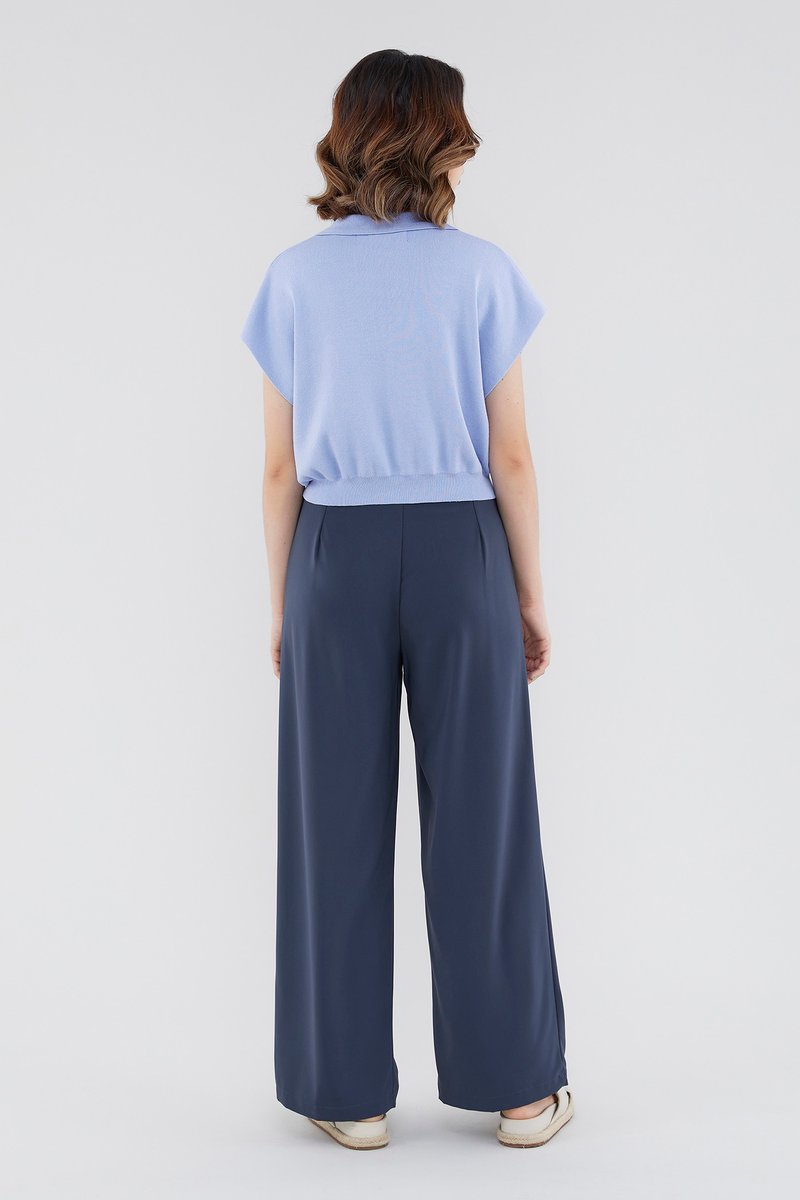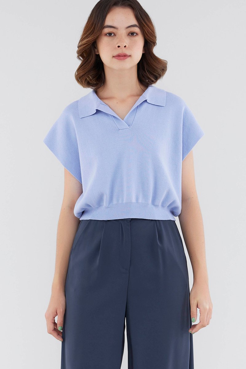<p><span style="font-weight: 400;">Fabric Composition: 100% Viscose</span></p> <p><span style="font-weight: 400;">Lining: None</span></p> <p><span style="font-weight: 400;">Sheerness: Opaque </span></p> <p><span style="font-weight: 400;">Pockets: None</span></p> <p><span style="font-weight: 400;">Your lunch to lounge top. Made from soft and non-sheer knit fabric, this top features a collared V-neck, short and wide sleeves, slightly dropped arm holes and a stretchy, ribbed hemline. Worn in a relaxed, oversized fit and cropped length. </span></p> <p><span style="font-weight: 400;">Care Instructions: Do not soak / Do not bleach / Handwash or Machine wash on gentle mode / Do not machine dry / Iron using low heat</span></p>