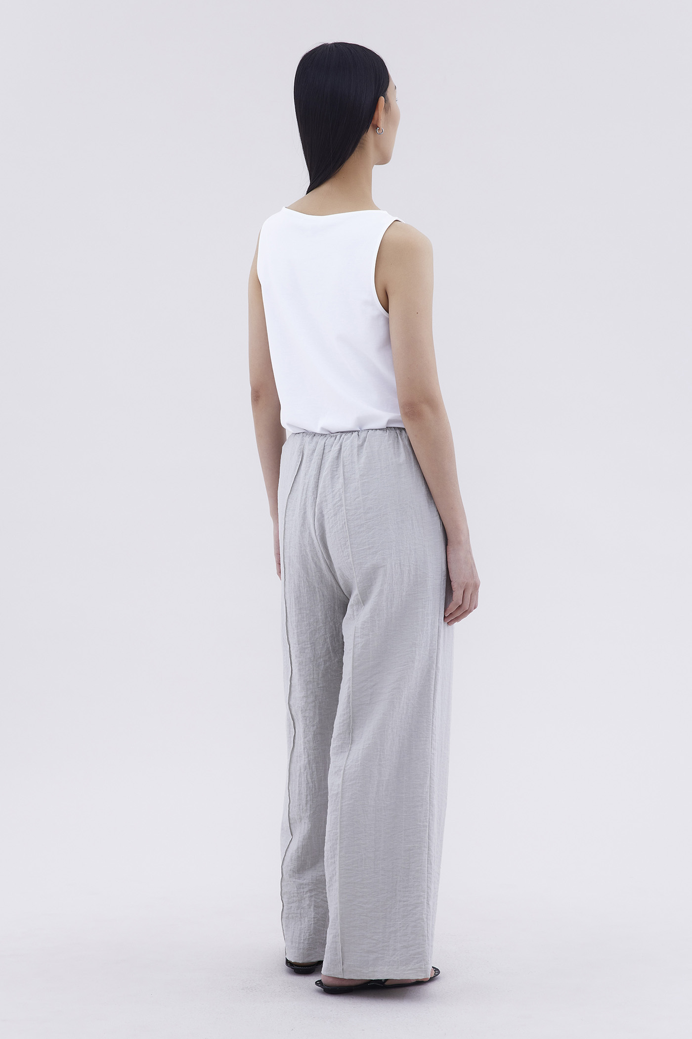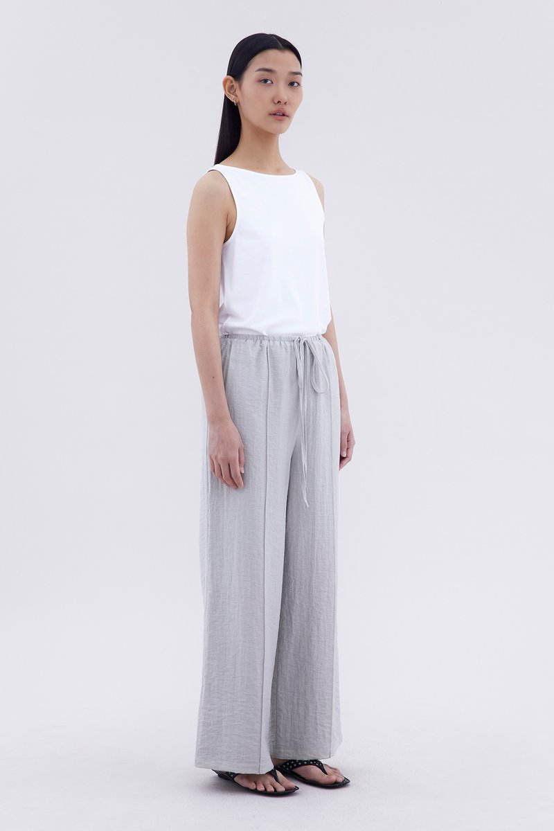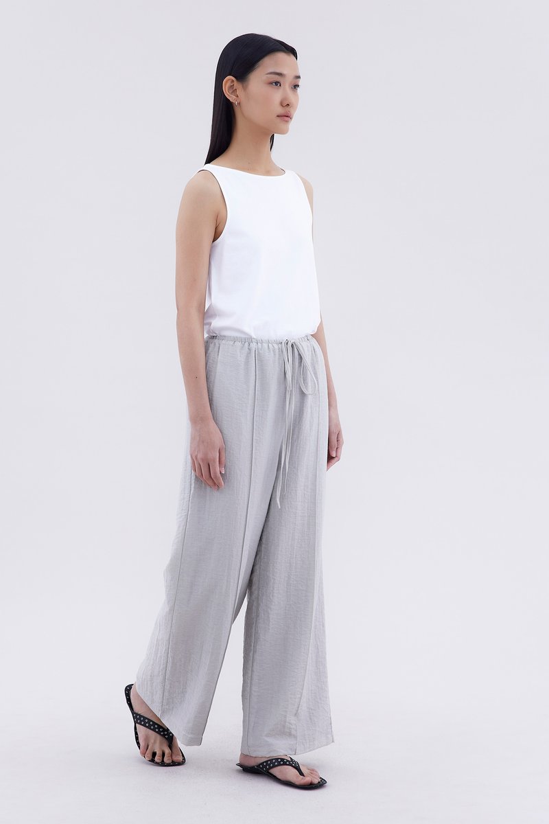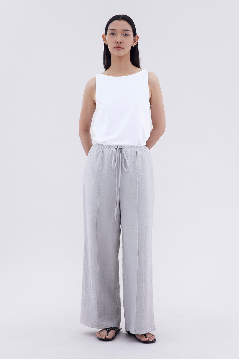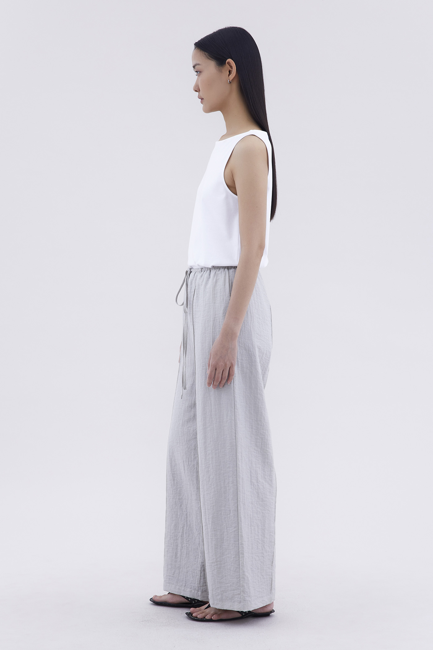 Easy does it. Made from light and textured fabric, these pants feature an elasticated drawstring waist and relaxed wide legs with a raised centre seam.