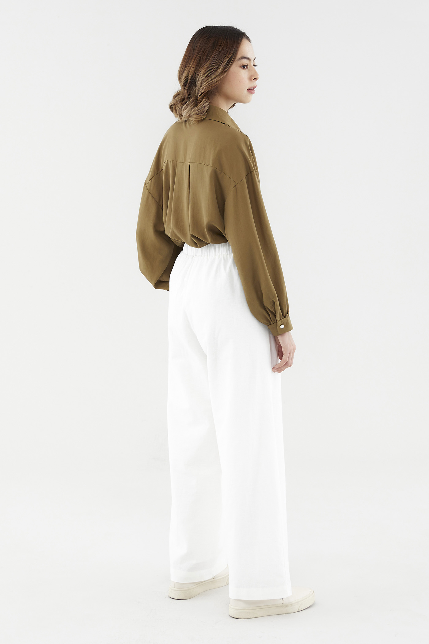One shirt, two ways to flaunt it. Made from smooth and slightly sheer lyocell, this airy piece is styled with drop shoulders, billowy sleeves, and a structured drape that softly envelops the silhouette. Its oversized design makes it endlessly comfortable as a top, and the perfect lightweight outerwear to layer over any outfit. Worn in a relaxed fit.
