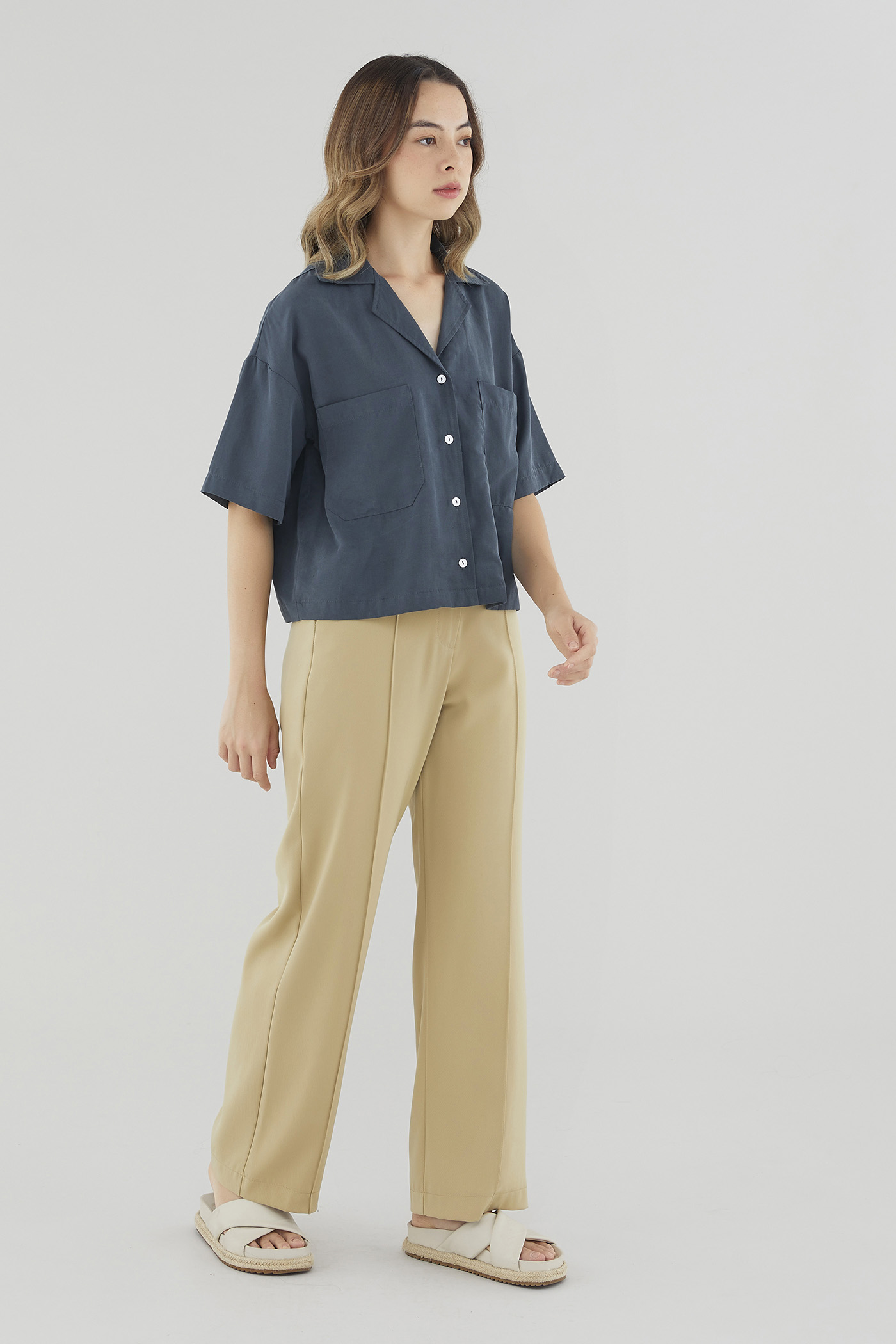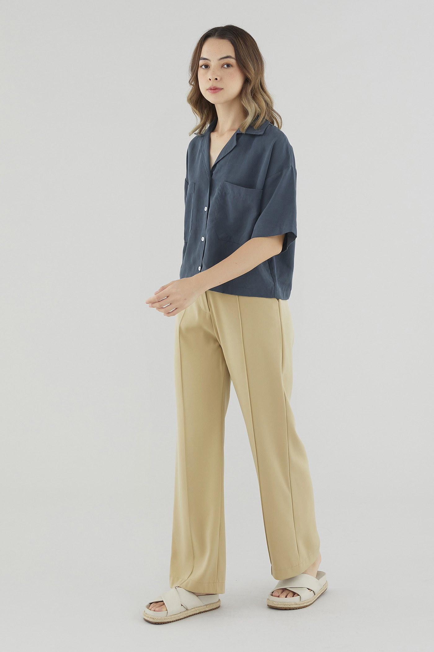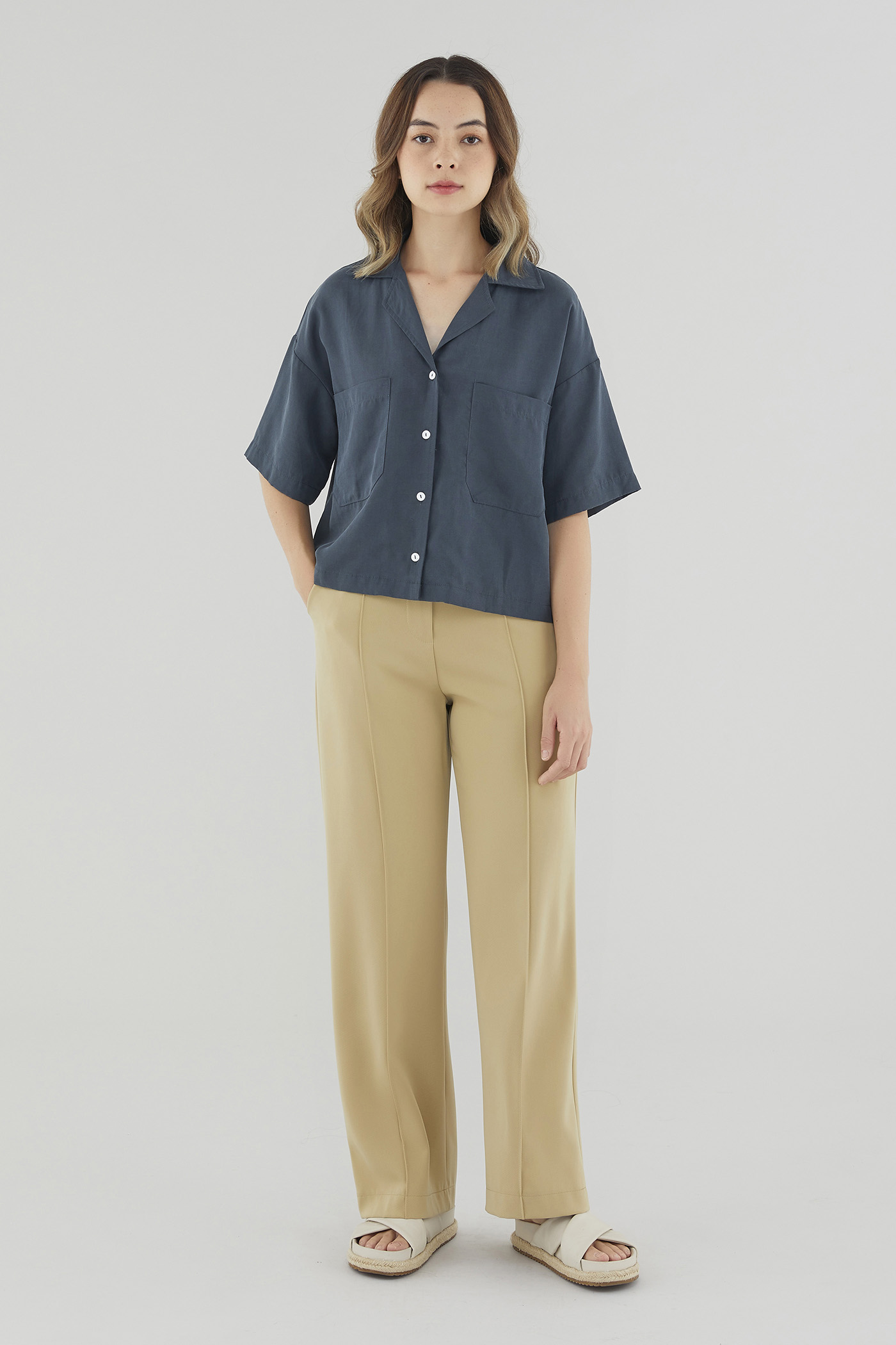 This piece is made from a combination of our Wear Better fabrics, linen and lyocell. Both are fully biodegradable, durable and derived from production processes that consume and generate significantly less resources and waste respectively — meaning your clothes have a longer, less environmentally damaging life cycle.