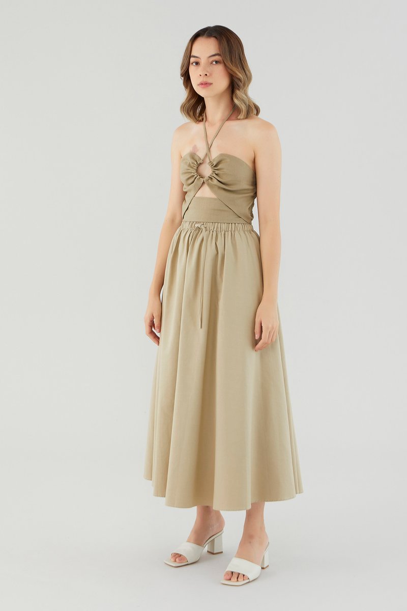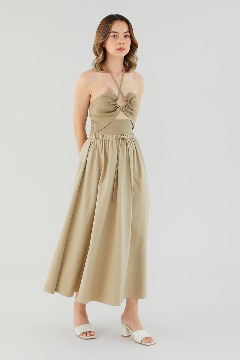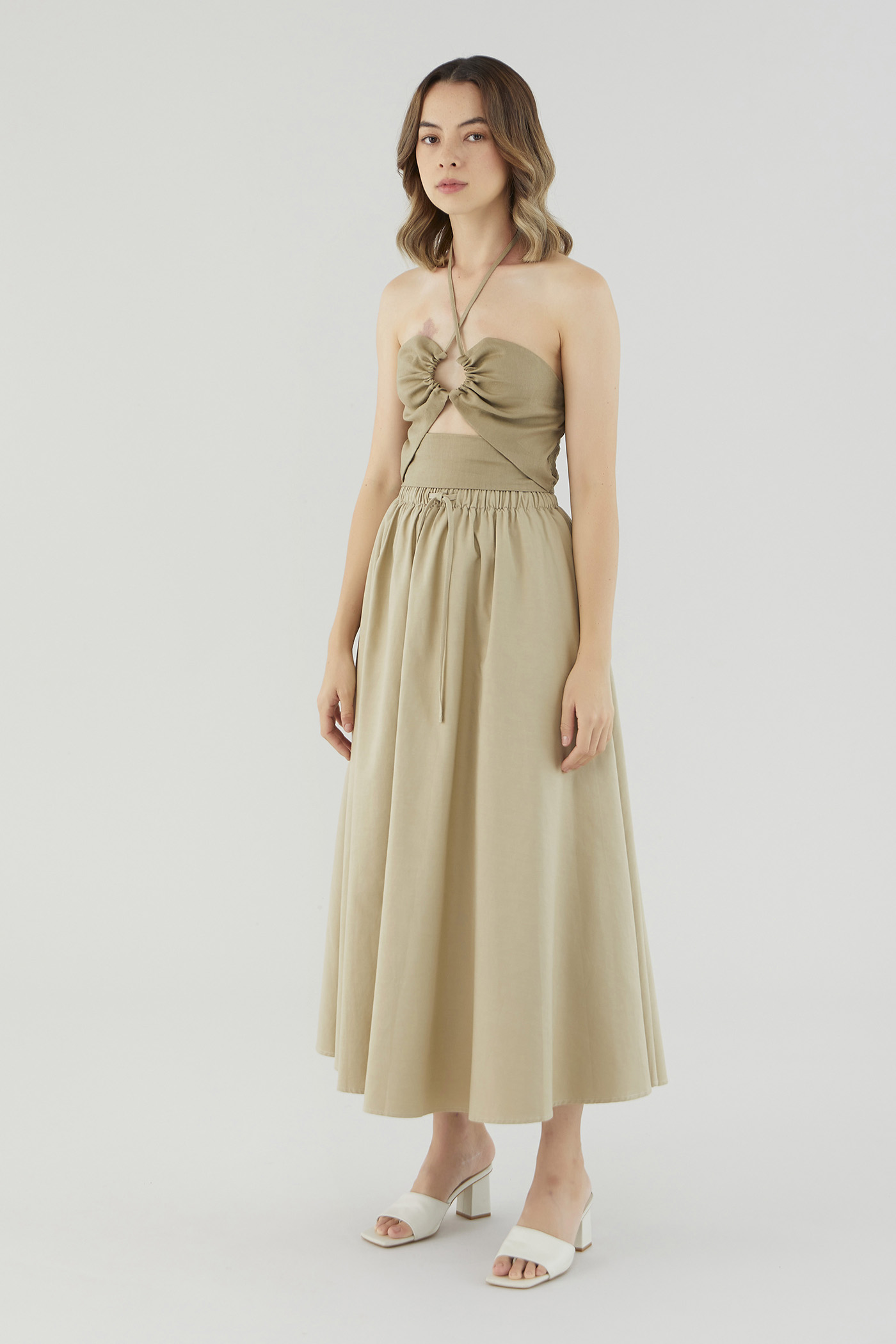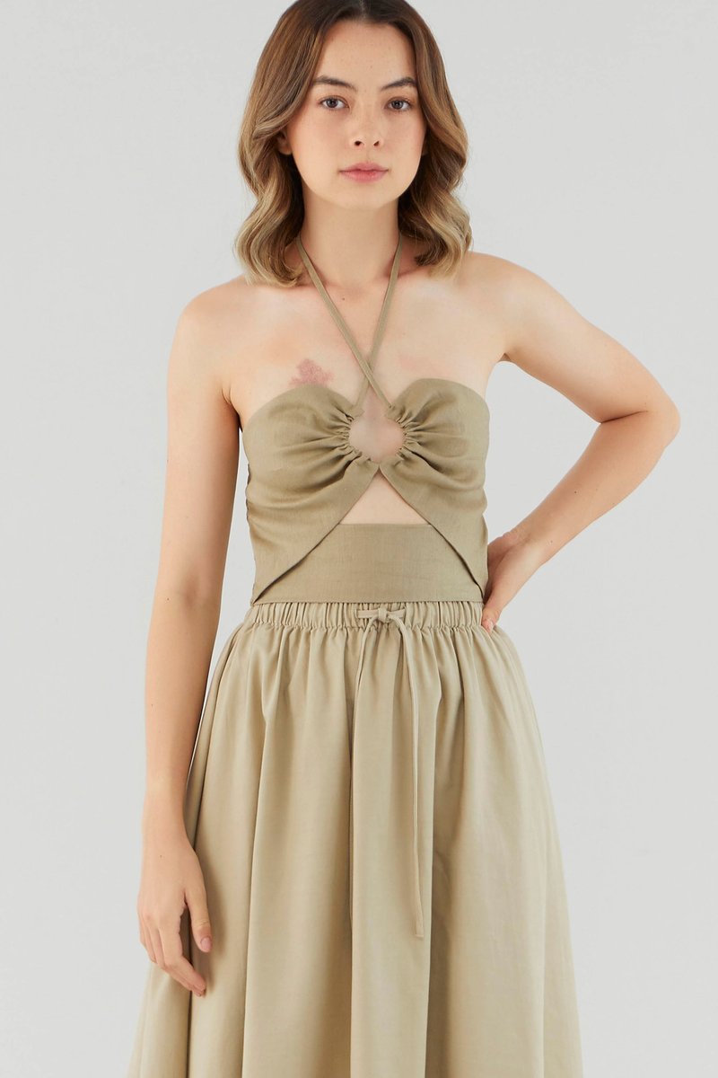 <p><span>Fabric Composition: 100% Linen</span></p> <p><span>Lining: None</span></p> <p><span>Sheerness: Lighter colour options may be slightly sheer. Nude undergarments are recommended. </span></p> <p><span>Pockets: None</span></p> <p><span>Make an impression. Cut from airy and lightweight 100% linen, this sleeveless top features a halter neckline with self-tie straps, a cut-out on the front and an open back with smocking at the bodice for comfort. Fits slim in a cropped length. </span></p> <p><span>Care Instructions: Do not soak / Do not bleach / Handwash or Machine wash on gentle mode / Do not machine dry / Iron using low heat</span></p> <p><i><span>This piece is made from 100% linen, the unsung hero of hot days and one of the least environmentally damaging fabrics. Derived from the unfussy flax plant, not only does its cultivation consume significantly less water, pesticides and arable land — but linen’s excellent durability and biodegradable nature also means your clothes have a longer, more waste-free life cycle.</span></i></p>